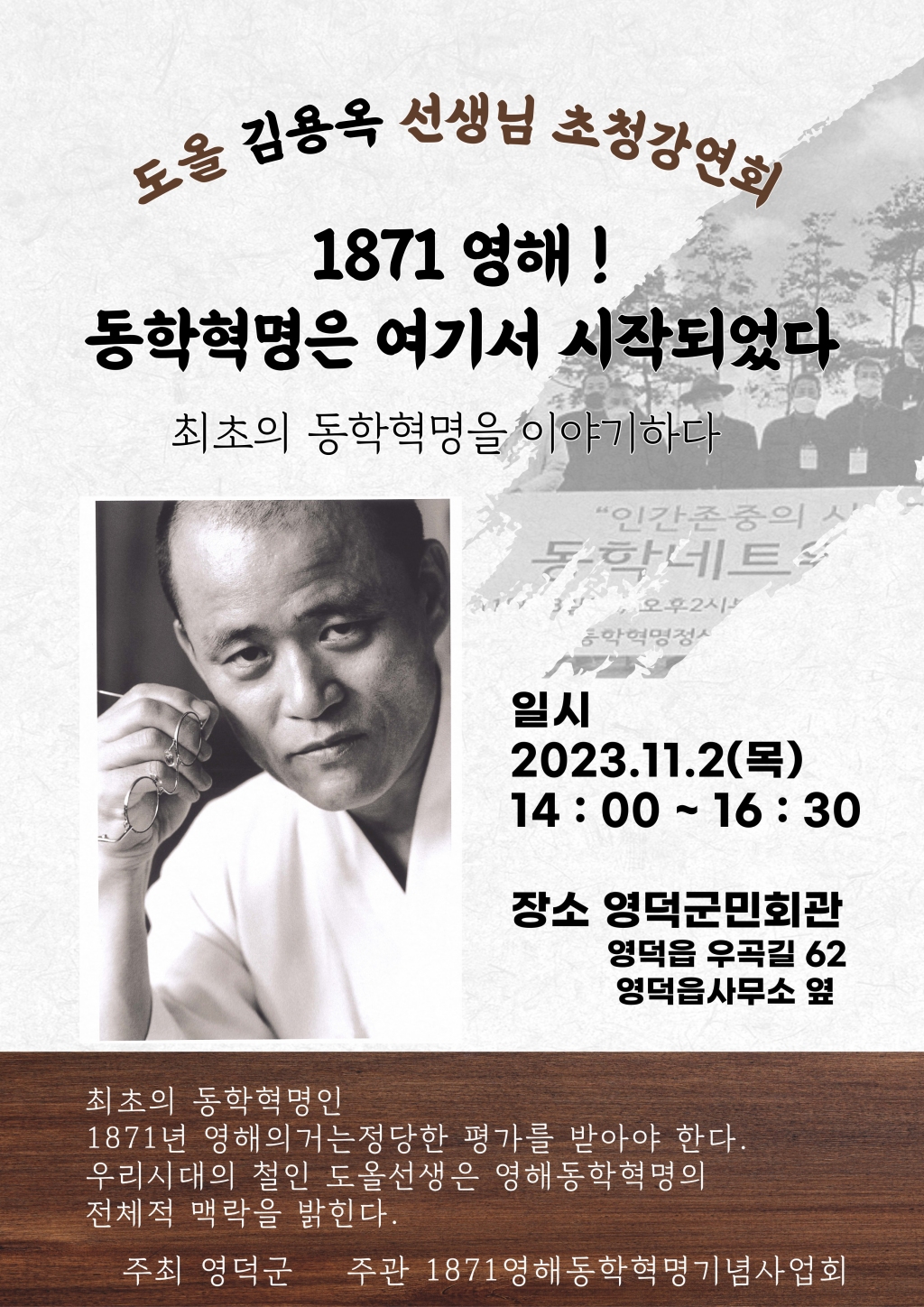 애초 계획은 10월 29일(10월 마지막 일요일)로 계획하였으나 인근 영해지역의 ‘1871 동학혁명 기념사업회’에서 기획한 ‘도올선생 초청 강연회’에 참석하고자 일정을 변경했습니다.